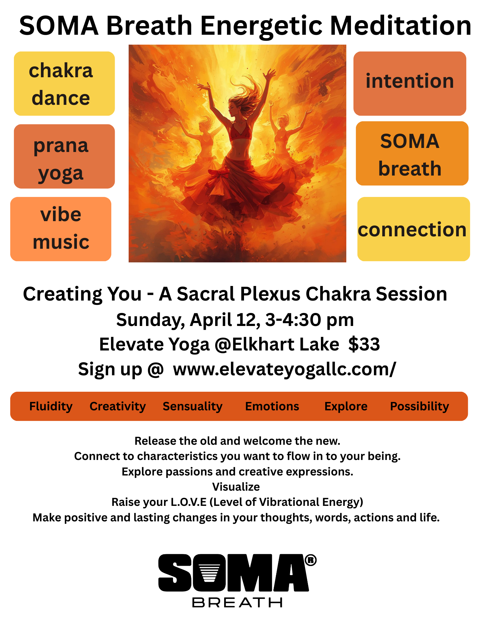 SOMA Breath Journey- a 90-120 minute live-in-person session similar to the Energetic Meditation but designed to go deeper into the experience with 4-5 rounds of rhythmic breathing.